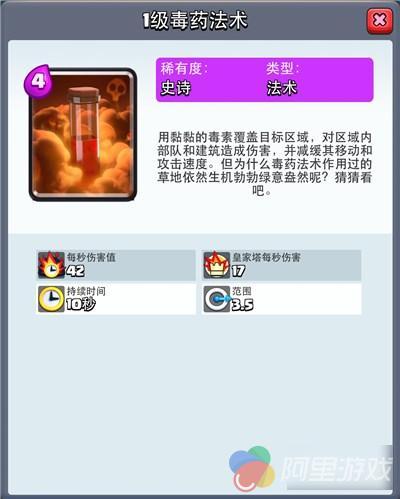 毒药可以减速单位约18%,顾名思义,降低输出频率,降低单位时间输出量。同时,增加敌方在毒药效果内的时间,由于这个效果,在没有第三方的影响下,一个中等速度的单位穿过毒药需要大约5秒(相当于4费只产生了一半的效果)。