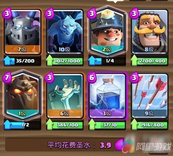 这套卡费用比较高,达到了3.9,但是没有采集器,大家不要带采集器,这会完全破坏这个卡牌的节奏,不是一个套路。采集器适合毒猪这种一波一波爆发或者不断推进的卡组,而这套卡则是一种步步为营的感觉,天狗沉底,在不断飞向敌方塔的同时攒费,铁苍蝇配合小苍蝇解牌并打出防反,依靠天狗母体的血量扛住伤害,时机差不多的时候矿工偷过去继续扛住,为小狗提供稳定输出,而对方若用地狱塔、火枪、三枪、冰法这些单位阻击天狗时,捏在手上的大电就很关键了,消灭阻击部队的同时眩晕0.5秒,对方瞬间崩溃。箭雨则是斩杀苍蝇公主的利器,骑士和墓碑则负责防守地面的进攻,这一的搭配虽然奇葩但是效果非同凡响。