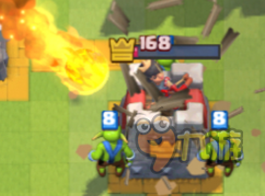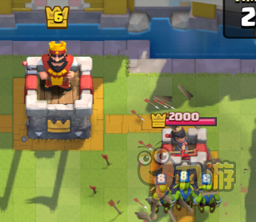 计划通,三个哥布林在对方箭雨空了之后对对方塔输出了大约480的伤害,当然这并没有结束。又过了半分钟,丢出了第三个桶。这次对手捏着箭雨不敢秒放了,犹豫了半秒塔掉了不少血后选择用小恶魔清哥布林。