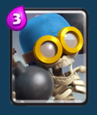 在游戏目前的8种群伤兵种中,除了定位有严重问题的女武神之外,就属炸弹人最弱了。不过作为能在1级竞技场就能解锁的普通卡,炸弹人确实是无数新手和平民玩家的好伙伴,在前期的AOE伤害全靠他了!炸弹人的DPS其实相当高,满级时可达147,仅次于法师、女武神和黑暗王子,如果有其他兵种保护的话,那炸弹人可以很好的制裁各种兵海,甚至连黄毛也照杀不误。