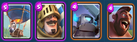 这四张卡牌都是对建筑构成极大威胁的卡牌,其中气球兵配合冰冻法术,可以一波推掉护卫塔;王子在冲锋后,如果无单位阻挡,第一下攻击所造成的双倍伤害,对塔的伤害也是极其巨大的;迷你皮卡类似于王子,单体爆发伤害非常可观;最后是野猪骑士,虽然爆发能力不及前三张卡牌,但是它的攻击目标是建筑,且移动速度快,还可以直接跳跃河道,配合冰冻法术效果显著。