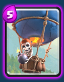 2阶竞技场的另一张紫卡,拥有极高的攻击力,放着不管的话,甚至能炸毁基地,死亡后同样会在原地掉落一枚炸弹,但只能造成约莫100点伤害。解法很简单,卡组里必须有对空单位,2张或以上,看到气球兵后果断放出即可,跟哥布林飞桶一样,属于只要有所准备,根本不是威胁的一张紫卡。
