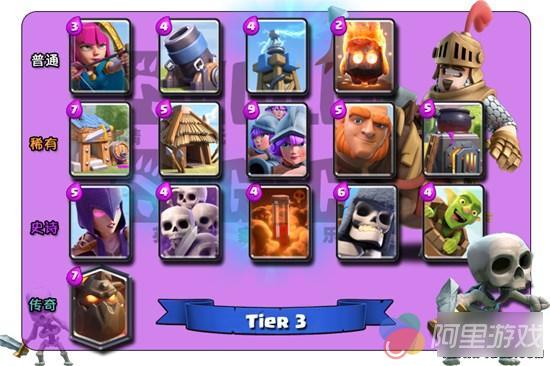 T3当前环境中可以在少数套路中有所发挥,不建议部落内乞讨,但金币富余的时候可以考虑在商店买几张。