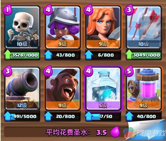 基于上面这一点,可以说这是一套非常吃卡等级的卡组,冰冻不高几乎是没法玩的。这样一套看似橙卡主导的卡组实际才是真正土豪的卡组。