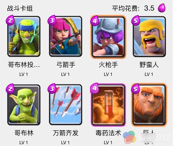 卡组要点:这个组合会不由自主地想到戈仑石人配合毒药的玩法,卡组正是由毒石流套路演变过来的,和毒石流套路不一样的是巨人相对的血量没石头人那么多而费用更低,让我们可以有更多的卡组配合。具体思路和巨人火枪一样,比较简单的进攻套路,而不一样的就是在进攻的时候巨人过河之后要放下毒药,位置选择正确就不会有太大的问题,在耗到对面塔的情况下可以有效清理对手用来对付巨人的卡,巨人可以安全地输出大量的伤害。