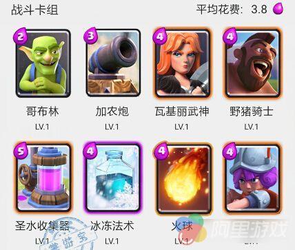 卡组要点:在电猪开始横行霸道的时候,上周的冰猪突然大放异彩的席卷了A8竞技场。这套钟培生的卡组也被无限的改造,其中小骷髅和箭雨是可以替换火球和哥布林的,野猪配合法术的进攻模式,简单的解场,和以往的野猪卡组并没有什么不同,在即将到来的518更新中,冰冻加农炮采集器都会被削弱,这套卡组是否能在本周继续大放异彩,我们拭目以待。