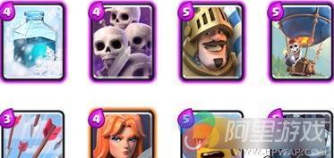 冰冻、气球、骷髅大军、王子、亡灵大军、野蛮人、箭雨、女武神