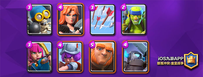 最后,你还需要一点低费的牌来使得整个卡组的圣水消耗平滑一些,这时候,弓箭手跟哥布林投矛手就是不错的选择。