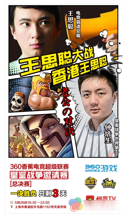 有这些大神们参与进了百万奖金的争夺战,《皇室战争》总决赛便注定了一场腥风血雨。诸神混战中,谁会将谁斩于马下?草根是否能逆袭大神?双“王”大战,谁将笑到最后?一切的谜题,将于5月28日,悟空TV的直播中,为您揭晓。