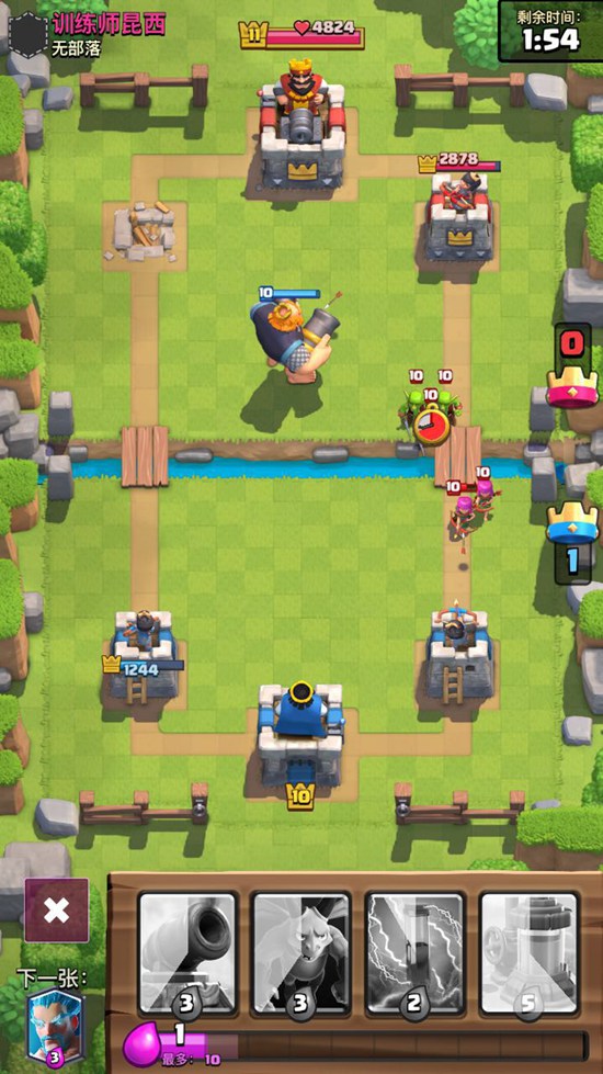 其次,我认为更关键的一点,是当皇家巨人过桥,对方放下防守单位攻击皇家巨人时,你的后续部队是在自己半场的。这与巨人或石头人之类的推进是截然不同的,因为当你在巨人或石头人之后续兵,诸如弓箭手法师之类,防守方可以等你过河后,直接放一个黄毛或者女武神清掉,之后只需要对付落单的坦克单位就行。而对于皇家巨人,对手的黄毛女武神之流只能攻击到皇家巨人,这意味着对手只能通过法术来伤害到你的后续部队,而像冰法火枪之类无法通过同级火球砸死的,就能对攻击皇家巨人的防守单位造成大量伤害,于是进入这样一个循环:皇家巨人磨塔血,对手出兵防守,你的后续部队在皇家巨人后方输出对手的防守部队,导致对手一直缺乏反击能力,最终败于皇家巨人的远程轰炸。最后,皇家巨人增加的这一格射程,还能使他在推掉对手一路公主塔后,放置在中间离河道3格的位置直接攻击另一路公主塔,而不会被国王塔打到。这个能力使得皇家巨人在1:1平局后的能力非常强大,因为对手几乎没有放置防御塔吸引火力的反应时间,如果提前放的话又会被皇家巨人在远距离白吃。