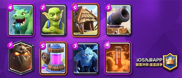 这副卡组很难防住电火猪,但是可以轻松抢塔,所以索性放弃防御(不是完全不妨,猪什么的还是要用小炮运走的)。电火猪的低费配置几乎没多少空间放高费卡,多空兵也极少,等对空单位出来下毒就行。