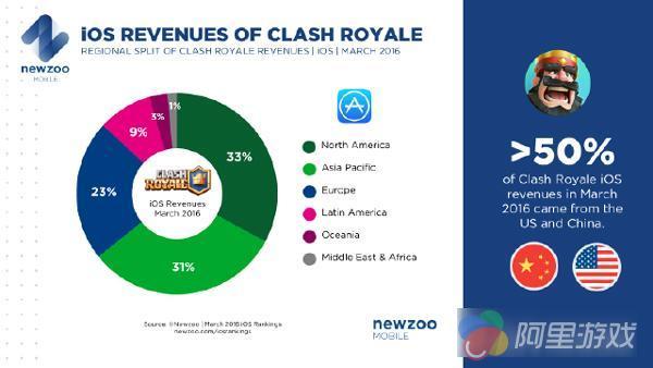 要说今年最火的手机游戏自然非《皇室战争》莫属了。根据荷兰市场研究公司Newzoo在一份报告中指出,芬兰移动游戏巨头Supercell今年推出的卡牌竞技游戏《皇室战争》3月份流水就接近1.1亿美元(数据不包括《皇室战争》在中国安卓游戏市场创造的收入),与平台方分成后的收入达到8000万美元。在全球上架后的当月就创造出了这样优异的成绩,不得不说《皇室战争》的魅力非凡。