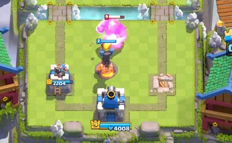 同时,由于他在河道处可以直接输出公主塔,后面的远程单位,我们除了【火球】【火箭】【雷电法术】【矿工】以外,是无法解掉的。