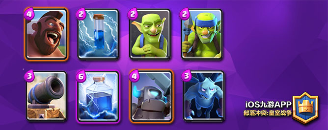 野猪:用法很灵活,可以跳猪,可以当得知对面用地狱塔防猪的情况下赚费,可以在对面沉底石头人/家驹的时候另一路下猪分散兵力。如果得知对面使用女武神解野猪,一定不要野猪+哥布林跳猪,直接送2费是划不来的。如果对面用黄毛解野猪的话,在我们赚费的情况下可以野猪+刀+小电一波。刀的输出还是很高的,这种情况下野猪能磨塔3下,而且过来的黄毛比较残血,不算亏。