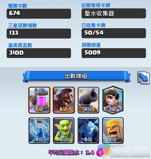 在文章一开始有提到为什么8级小对于我的分数影响这么大,因为在3000左右的杯段,7成以上的人的哥布林都是9级,少数更高等少数更低等。常见到对手以加农炮+哥布林or投手or小骷髅,若你费了两水却电不死对手的哥布林,让你的野猪只能摸一下塔做结尾,或是你电了一下刀布灵死光而你的野猪可以猛敲塔四下。仅仅一个等级的差距却有如此剧烈的影响,所以我认为电水是本副牌的升级第一选择。