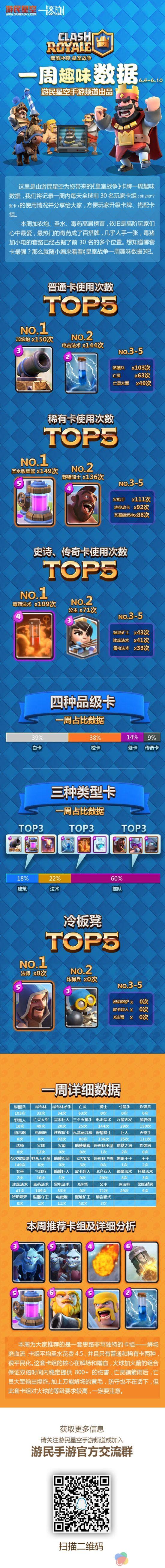 这里是由游民星空为您带来的《皇室战争》卡牌一周趣味数据,我们将记录一周内每天全球前30名玩家卡组(共240*7张卡)的使用情况并分享给大家,方便玩家升级卡牌、搭配卡组。