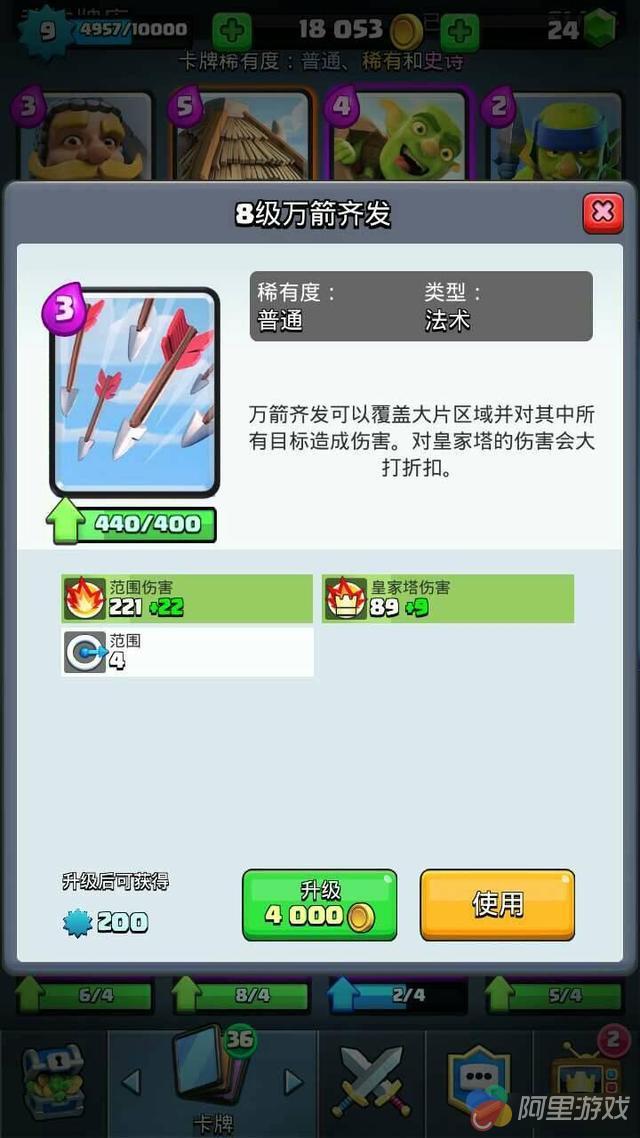 万箭齐发出场率降低的直接原因就是电击法术崛起,电击法术费用比万箭还要低一费,可以击残6个核桃,秒杀同等级哥布林,最**的是有一秒的眩晕效果,强制重置普工,很多人宁愿不要万箭都要带上电击,为什么?因为有它对面就开不起车来了