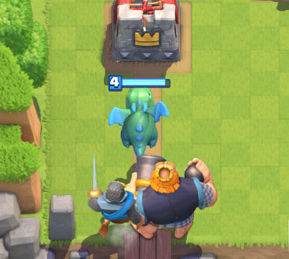 皇家巨人最担心的问题,就在于进入了对手的半场之后遭受部队围殴,所以我们卡组中带了飞龙宝宝是绝对符合用于解决这件事的,而且皇家巨人的移动速度不快让我们可以在适当的位置放下皇家巨人之后慢慢地再放出飞龙帮助皇家巨人解决问题。