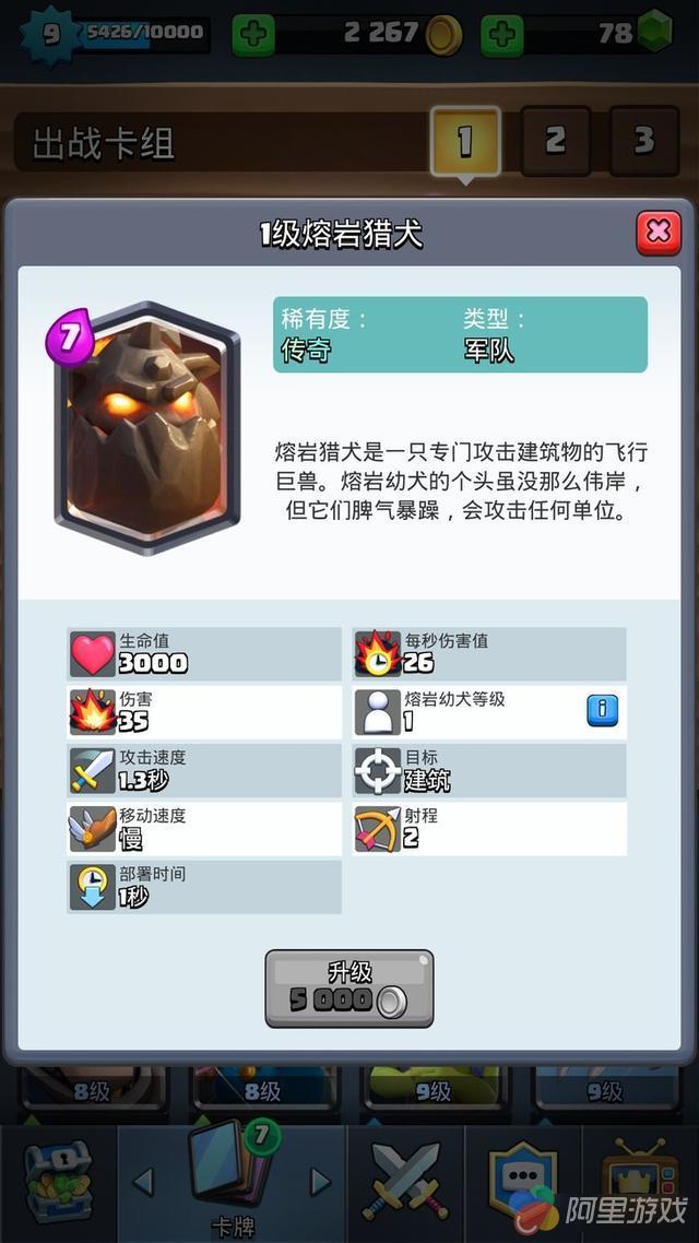 飞狗是更新后新出的传奇卡,它在a4就有概率开出来了,大家都说飞狗相对另外两张新出的传奇卡来说真的弱成渣……好吧,这也是事实,飞狗就相当于飞行的巨人,而且伤害也不高,之后又再次加强后小狗的伤害有所上升了!
