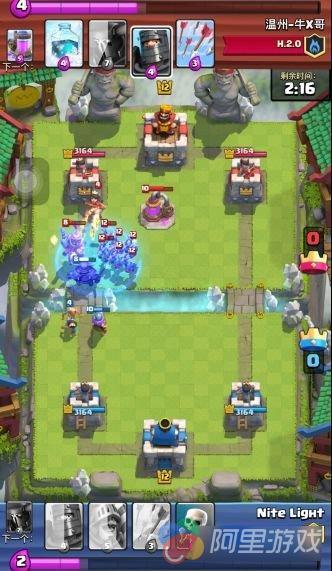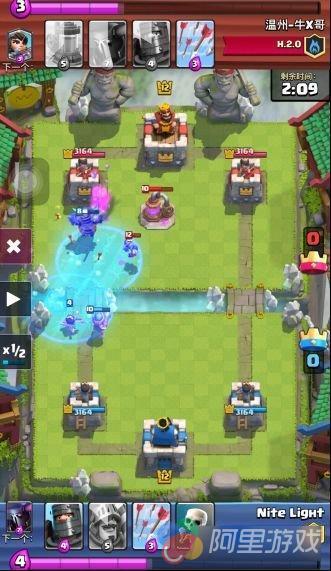 这里红色方下了黑王,手里空费,而此时,蓝色方在另一路放了一个王子!结果很明显,红色方另一路的防御塔是炸了的,并且最后取得了胜利。