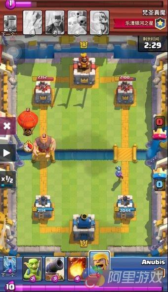 如我所料,对方只有2费的小哥布林进行防守,随后,凭借着反打的兵力,我成功的吃掉了对面的一座防御塔。