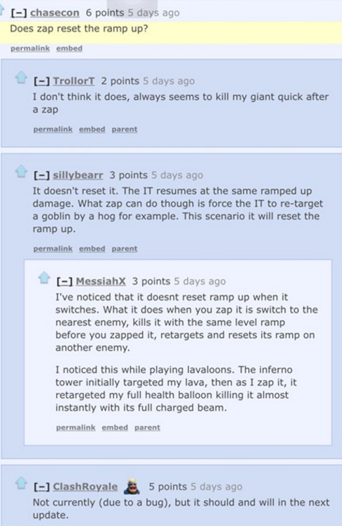 国外网站reddit有个人问小闪电为什么不重置地狱塔伤害?如果有经验的玩家应该知道现在地狱塔被小闪电打断后只重新选择目标,但伤害不会重制,仍然继续被打断前的伤害值。下面官方回复说这是一个bug,下次更新会修复。