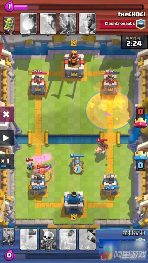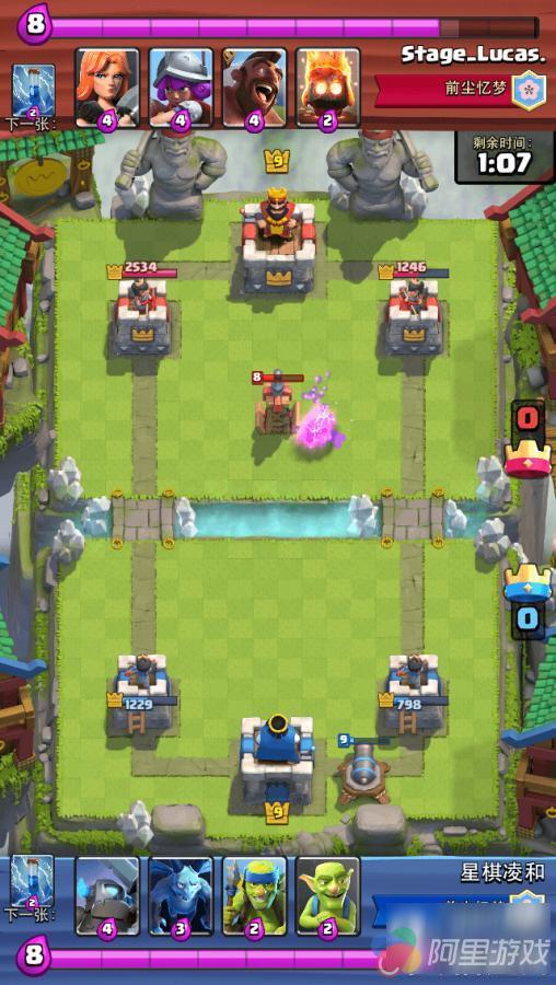 以一场实战为例,如下图。7级野猪先被3级毒毒了一秒,然后相当于和9级加农炮单挑。在3锤干掉加农炮之后,饮恨死在公主塔的箭 下。而公主塔明显留有余力,就是说即使之前野猪没被毒到,和加农炮单挑也只是同归于尽的归宿。由于野猪的生命和加农炮的攻击都没有改变,就是说更新之后依 然是这个结局。