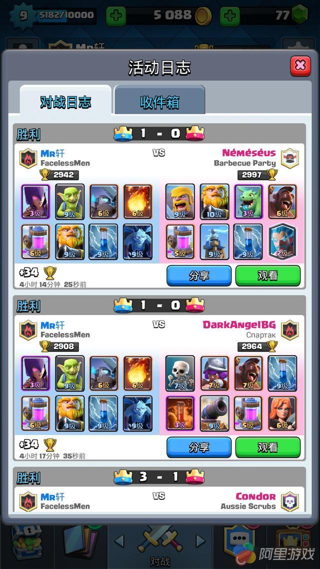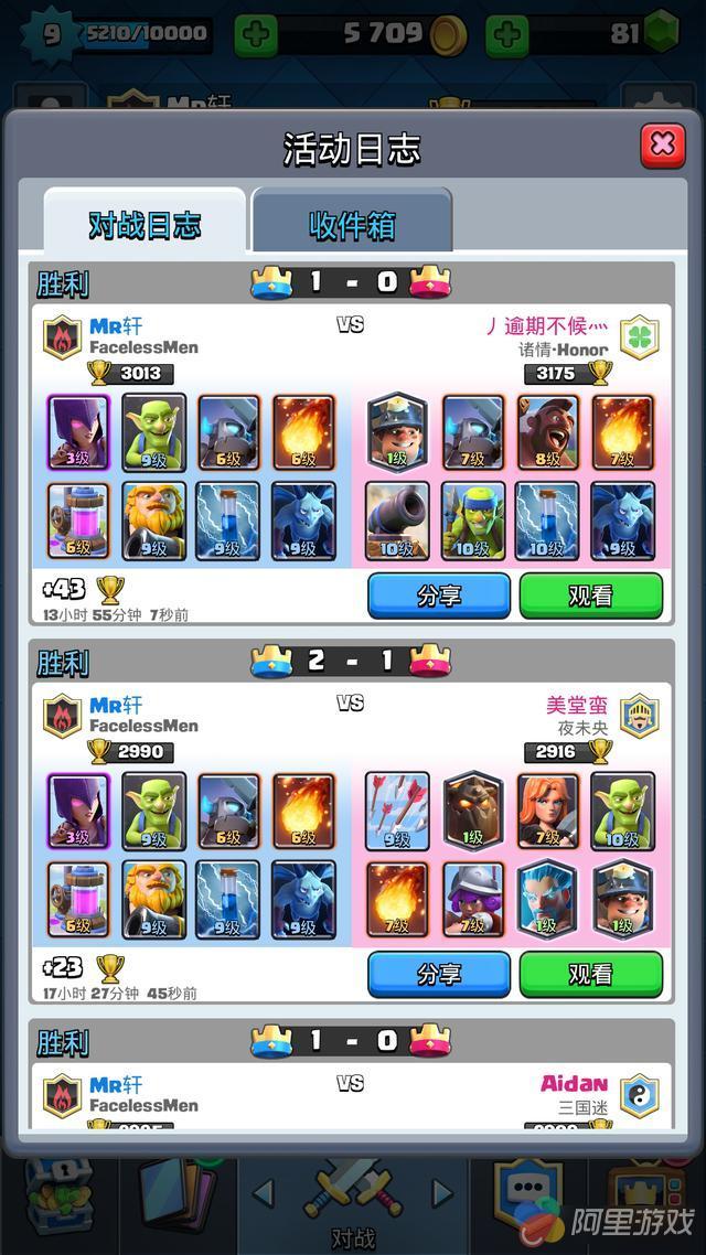 小编昨天撞大运,免费箱子开出了天狗,然后开心的组了个天狗套装,从3098直接掉到2600+。。。。。。然后再用卡组二,带女巫那个卡组打回来的,并不是一直连胜,期间输了两三局。