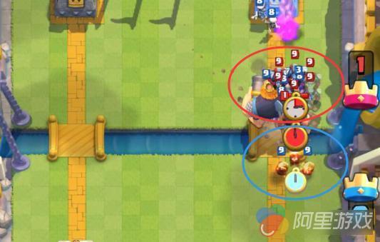 而当我们用较少的圣水点数废掉对面的第一波攻势后,我们余下的小兵就会向对面发起反冲锋,这时我们可以在桥头占一个黄家驹就可以欣赏对面在风中凌乱的身姿了。什么?对面还有解牌解你的黄家驹?那我建议在黄家驹后面再跟上一队火精灵,这东西可以瞬秒对面的苍蝇群,还可以炸残对面的蛮子配合上我方在上波进攻中的残余部队绝对够对面喝一壶的了。