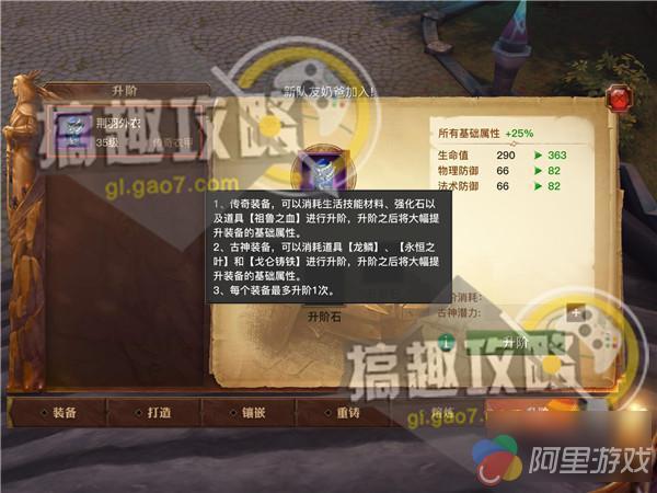 升阶效果:提升装备基础属性成长,升阶能够提升阶层,该强化不和熔炼效果重复。
