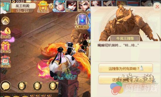 5、点击第一项“这雕像为何异响”,然后会进入战斗,5只狂牛一个主BOSS,牛魔王幻影(进入战斗)