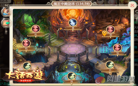 成功通过八卦迷宫的队员可以在阵中自由行动,队伍自动重新组起。同时出现BOSS牛魔王幻影,击败之后可以在中殿自由进出,同时中殿也是进出其他副本的入口。