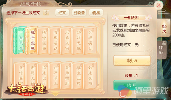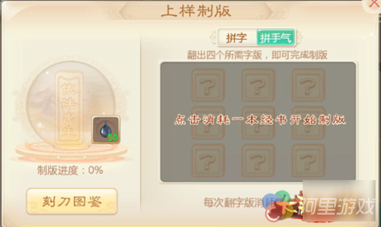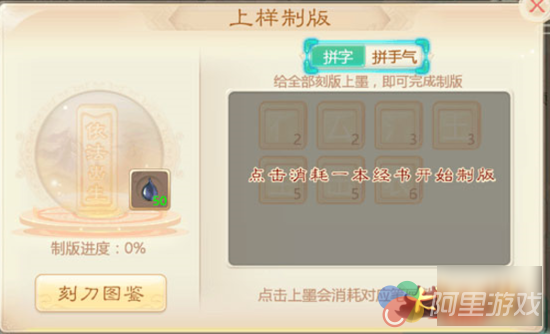 玩家可通过完成单人任务,获得墨点,对相应的经文一一进行上墨,上墨方式有两种,一种为上墨制版(给笔划上墨点),另一种为拼手气。(九宫格赌几率)玩家朋友可根据自己喜好选择相应的方式进行上样制版。(特别注意:经文若选择一种方式进行上样制版后,就无法进行更改。)