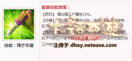 男鬼专属套装,依然霸气无比的套装,这个也是一个很考验男鬼抗性的套装,只要两回合不被控制上,那么珍藏套的效果就是下回合三尸虫百分之一百狂暴,如果是无价套的话,效果就更加逆天,此次三尸法术无视对方的三尸抗性。可以脑补一下这个画面,基本能带的起无价司命套的男鬼装备都不会差到哪里去,那么这一下三尸虫的回血伤害还是回血血量绝对都是会爆炸的,大家拭目以待吧,在我看来无视才是最给力的技能,因为只有无视才能不被针对,也无从针对可言,