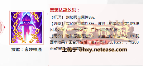 男女魔的移山专属套效果基本大差不差,那么我们就来说其中一个吧,男魔的是被速单位速上之后自带脱混,而女魔的则是被盘单位自带脱冰,概率描述也都是一样的,珍藏套为10%的概率,无价是没200敏捷增加1%的概率,那么就目前来说大概无价套能带来的真是效果在15%-16%的样子,概率还是蛮可观的,大话西游手游是一个几率无处不再的游戏,这也是大话的魅力所在之一,所以只有当我们尽可能的多做准备的时候概率在会偏向于我们。其实这个套装更加要考验男人的控制水平了,因为你不知道被冰的单位是不是会在这个回合突然脱冰而出,然后一轮精彩的连拉叫宝宝之后,让你之前的优势都付诸东流。