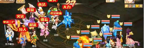 第二回合:当剑精灵被混住,男人可以采取5混来控制,女魔不间断大吸,男鬼继续回血,女仙秒,女人继续大冰