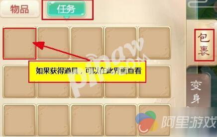 2.支线任务道具不和其他道具一起放在物品内,而是放在包裹的任务道具内,查看方法:包裹——切换到任务道具界面。