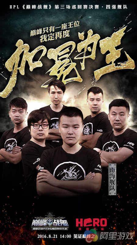 在参赛的四支舰队中,基于HPL《巅峰战舰》规则中“上届冠军会直接受邀参与下一场巡回赛决赛”的规定,卫冕冠军南海舰队是第一支锁定参赛资格的舰队。以“南海一出,所向披靡”为口号的南海舰队,聚集了所在服务器内巡洋舰、战列舰、潜艇等多个位置排名第一的玩家。经过首届HPL的磨炼,南海舰队以稳健的打法、默契的配合、多样化的战术显露头角,在第二届HPL决赛中一举摘得冠军,在《巅峰战舰》竞技史上留下了一幕幕精彩的对决。