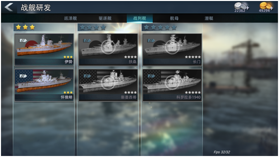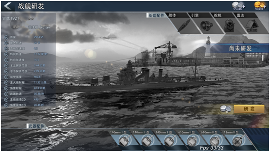 战舰有研发和进阶两个阶段,当研发未拥有的战舰时,需要将四种基础配件依次升级之后才能进行新战舰的研发,同理,当升级战舰时,也需要现将四种基础配件升级之后才能将战舰升至下一等级。
