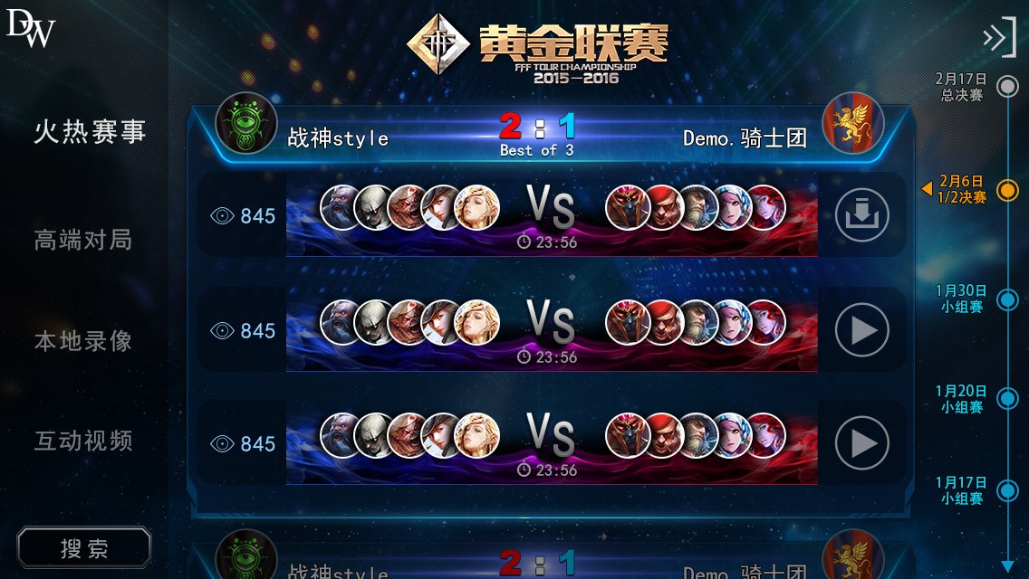 观战大厅不断完善游戏内置的视频播放功能,新增的快进操作,让勇士们的观看更顺手!