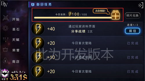 勇士们通过完成每日任务获取活跃值,当积累一定的活跃值时,就可以兑换奖励啦!