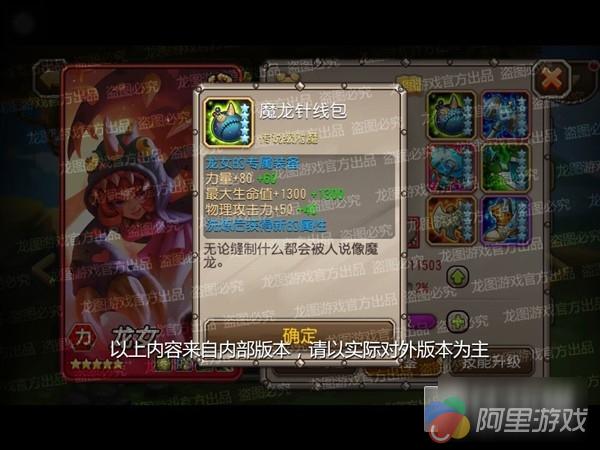 龙女的觉醒装备——魔龙针线包,大幅度增强了龙女的生存及输出能力,使她在战场上越战越勇,无坚不摧。