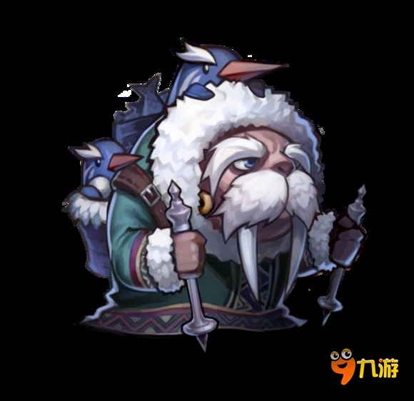 咸鱼飞击(大招):海民将自己包裹在大雪球里,向敏捷最高的敌方英雄滚去释放咸鱼飞击,滚雪球期间撞到敌人会对敌人造成伤害并眩晕目标,施放结束后回到起始位置。滚雪球期间丢失目标会重新选择目标,在此期间海民免疫一切控制。