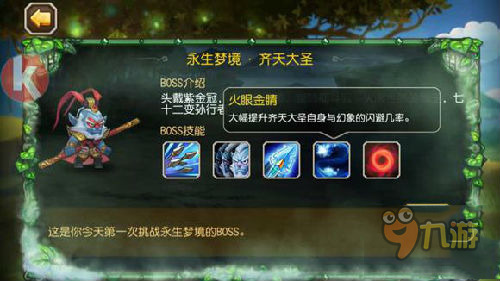 小冰冰传奇永生梦境新增了第七位BOSS,作为齐天大圣,这个BOSS的难度可定很高,怎么打呢,小编根据小伙伴提供整理了永生梦境齐天大圣boss的技能,小伙伴看一下,或许能够整理出高伤害的阵容。