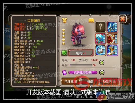 分析:目前不知道毒潭CD是一个比较尴尬的部分,因为没有视频,作为一个AOE加一个持续扣血技能,爆炸伤害个人感觉不会很高,但是后续有个持续扣血感觉会有不俗伤害,毒潭等级提高可能随之伤害会近一步提高,而且一般中排开大招时候小技能已经循环过2轮左右,那么毒潭理论是存在的。