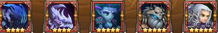 目前竞技场在用这套物理冰龙阵容防守,这里用冰龙就2个目的,起手靠配合其他英雄,对前排进行快速突破,形成变种单点组合(没有全能保护的幽鬼,秒死),中盘冰龙开大,给其他几个输出创造输出环境(四星以上冰龙无法被幻刺一刀暴击打死。只要一刀打不死冰龙,冰龙会马上开大,一定程度上也等于能防住幻刺的切后。)