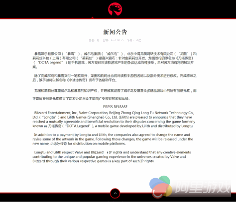 上周,龙图、莉莉丝发布公告,称已与暴雪和VALVE达成了和解方案,此前因暴雪要求而被苹果下架的《刀塔传奇》即将更名为《小冰冰传奇》发布于各移动平台。