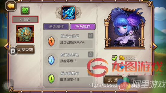 2、每个英雄适合的符石属性各不相同,所以要洗到自己想要的属性金币也会消耗不少。
