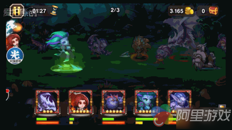 第一小关,由于敌方智力最高的是仙女龙,所以敌法开局就冲着她去了。敌方是三中排站位,敌法的能量燃烧能直接切到三个目标,回血量还是比较足的。经过火女、死亡先知和双头龙的两波AOE攻击后,敌方中排能量齐满,这时一般都是同时开大招。仙女龙开完大招后会闪到我方后场,此时敌法就算能量满了也别开大,因为会被仙女龙吸引跳回我方后场,这样站在前面的死亡先知就危险了,等到仙女龙闪回到原来的位置再开敌法的大招。这时冰女和仙女龙应该都被击倒了,冰龙和死亡先知能量满了齐开大招就顺利过关了。这里比较容易出现问题的就是敌法被暴击太多,死得太早导致战术失败;美杜莎的箭出暴击多的时候,火女会比较容易阵亡;冰龙大放空,没控住场导致失败。
