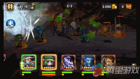 一图开局第一个难点就是对方剑圣开大招,此时我方极有可能减员,但是如果在剑圣开大招的同时,小鹿的魅惑技能打中了剑圣,就能让他大招反向攻击到自己人。而末日使者的控制技能要是第一手控制住了刚背猪,也会让刚背猪到死都开不出大招,单是以上两点就非常的考验玩家的运气。第一关几乎没什么手法,完全看运气,我方是有大开大就行,特别是刚背猪一定要第一时间开出大招,减少血量下降的速度,否则没等小鹿能量满,猪就得先倒地了。全员能撑到冰龙和光法开出大招基本就顺利过图了。这里容易出现意外的地方:刚背猪早早被末日使者控制无法使用技能,导致火女开大时直接秒杀猪;小鹿魅惑被剑圣闪避,剑圣开出大招使我方减员(这里也有可能出现剑圣的5刀分担平均,没集中攻击同一个英雄,这样就不会减员)。